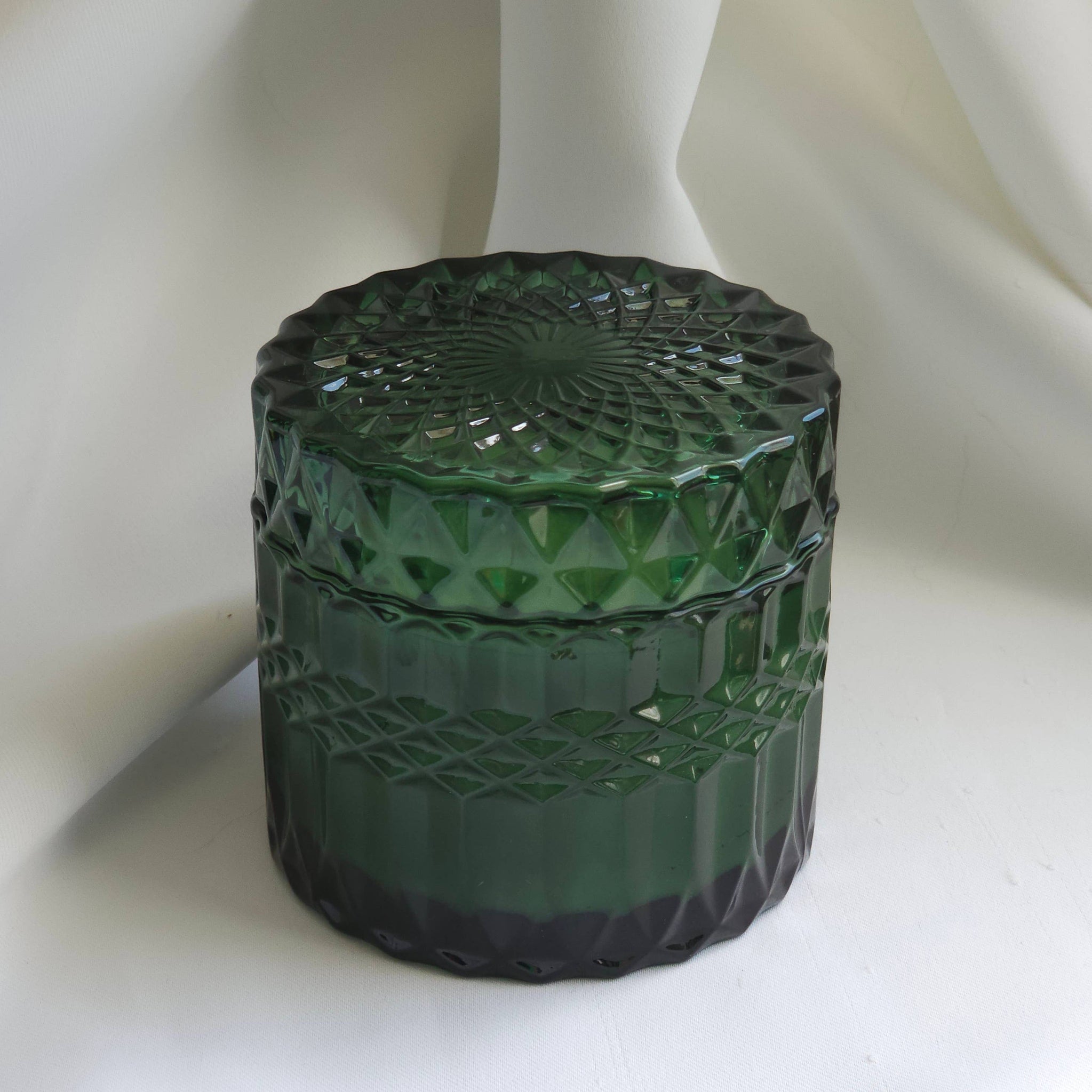 This listing is for the emerald green glass vessel, available in Christmas Tree, Home for Christmas, or Unscented. Scent listed on bottom label.