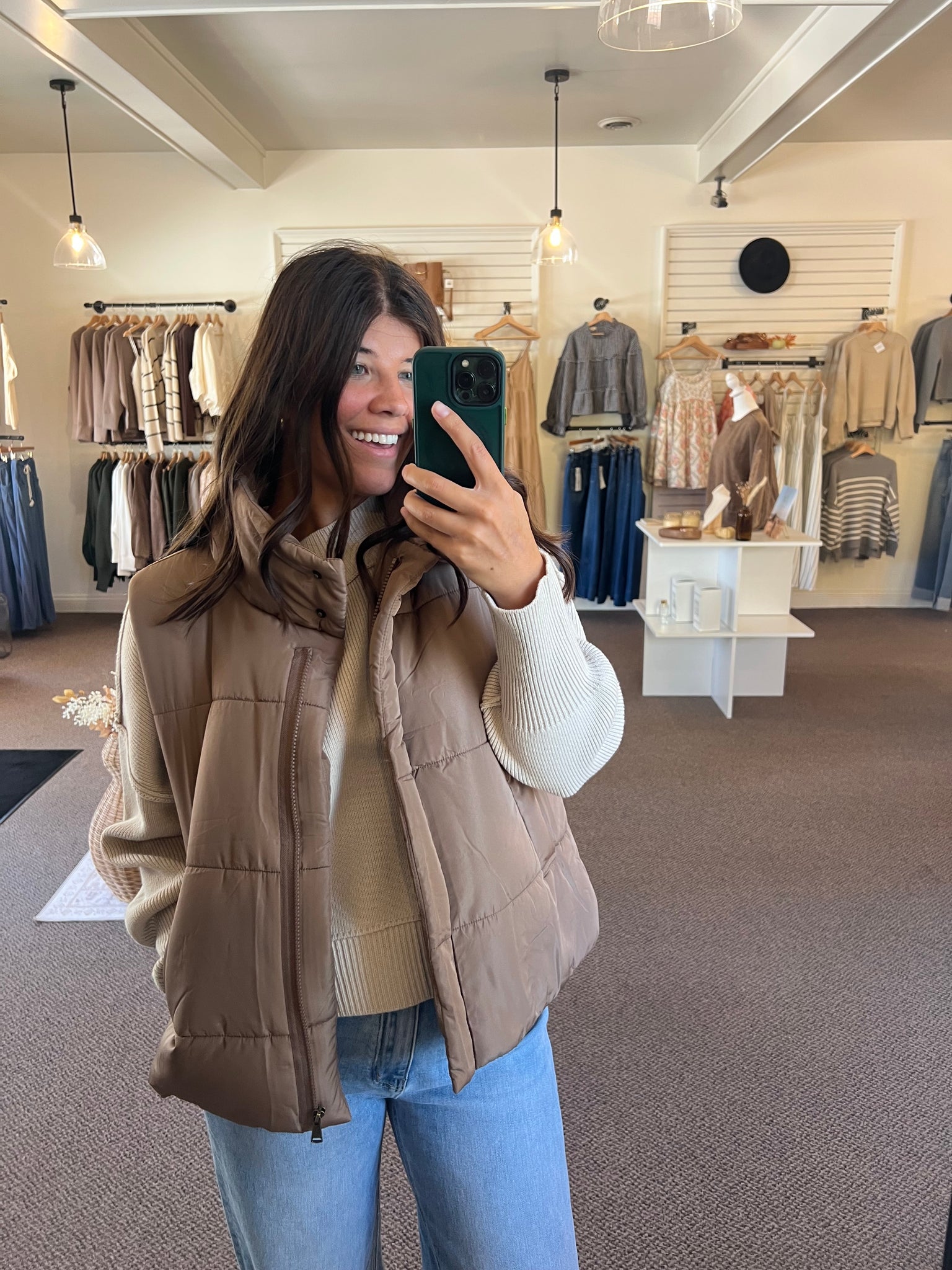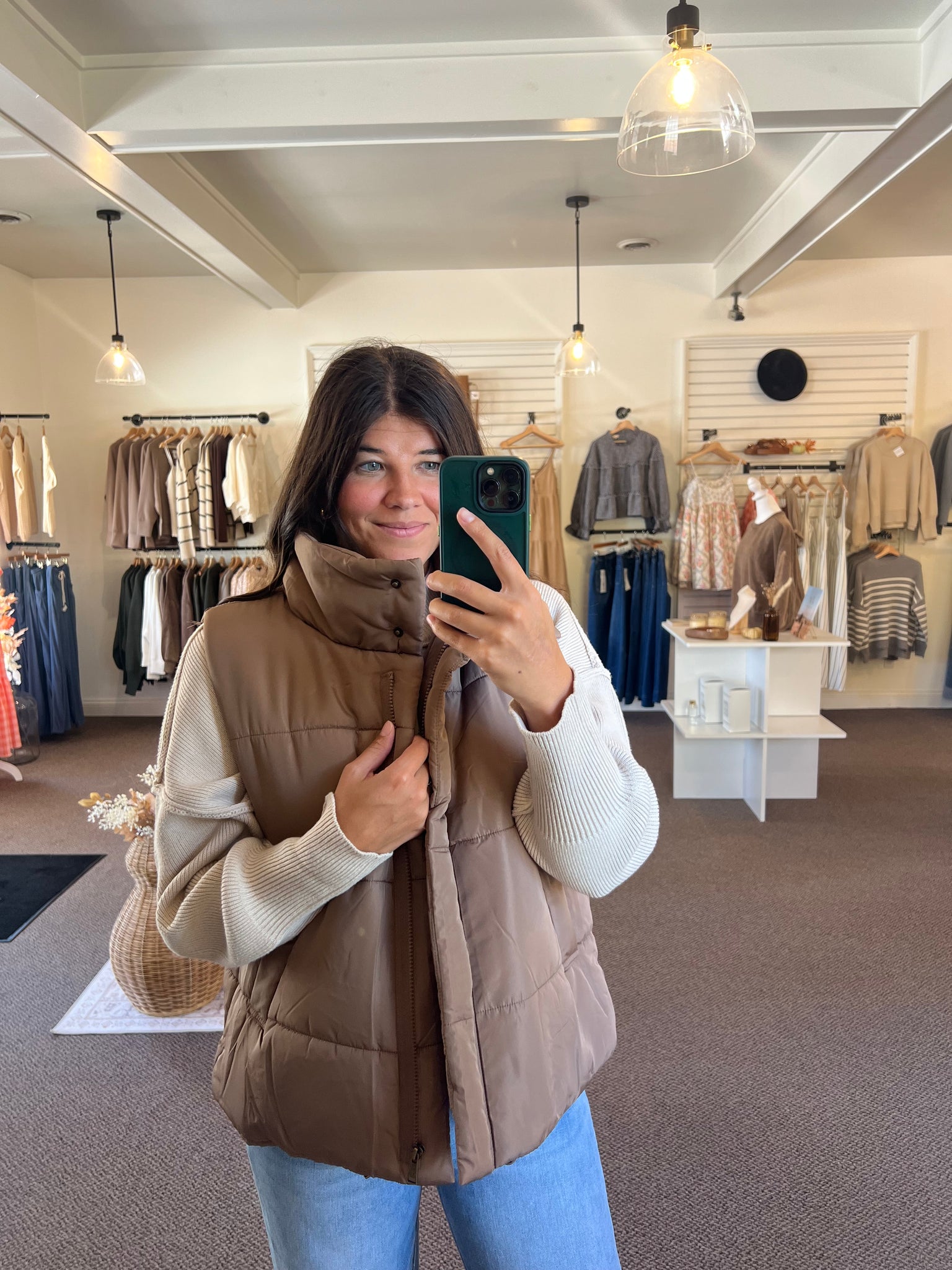 • Load image into Gallery viewer, Solid Zip Up Puffer Vest - Cocoa