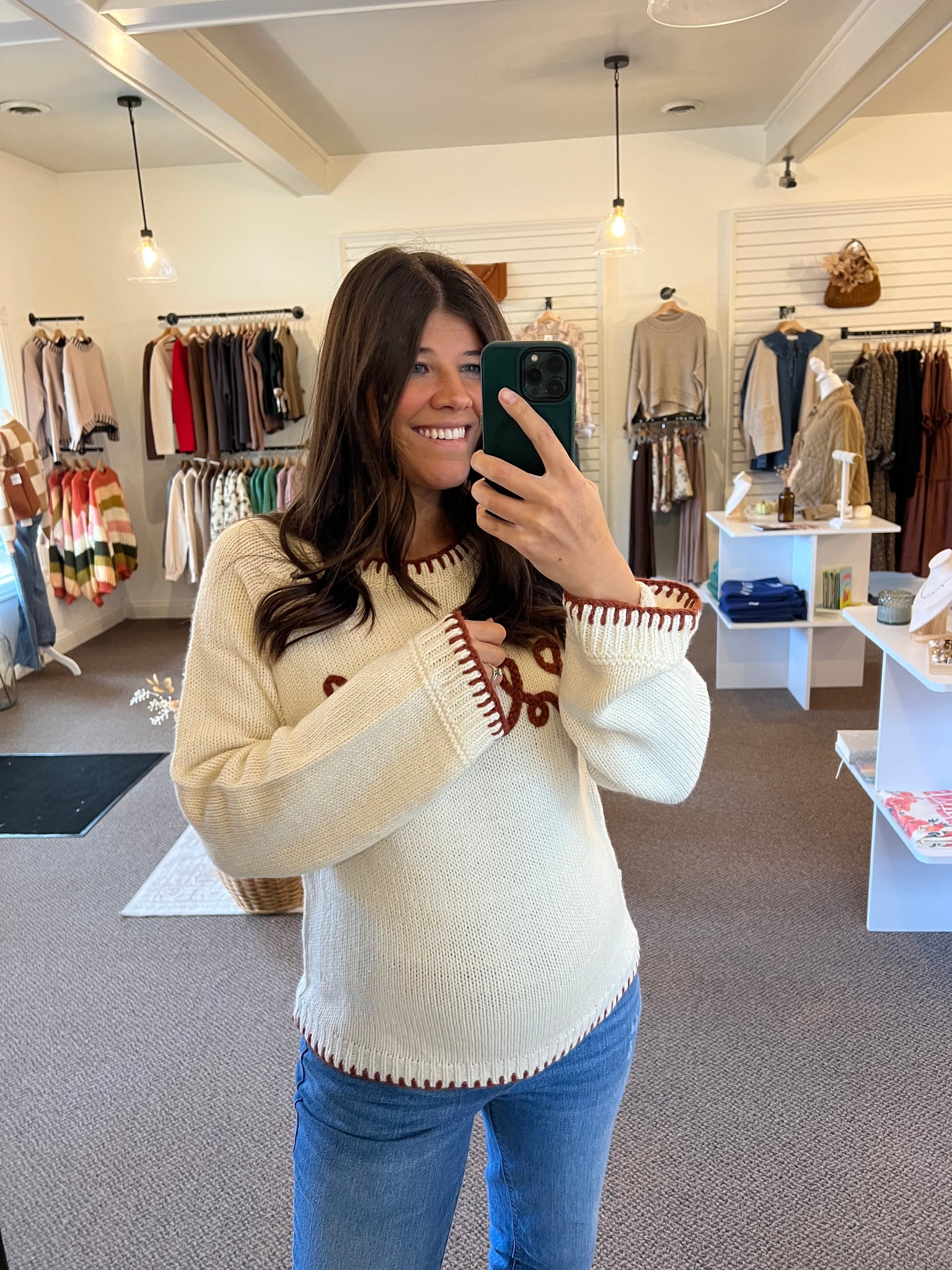 BLESSED THANKSGIVING LETTERING SWEATER TOP WITH BLANKET STITCH