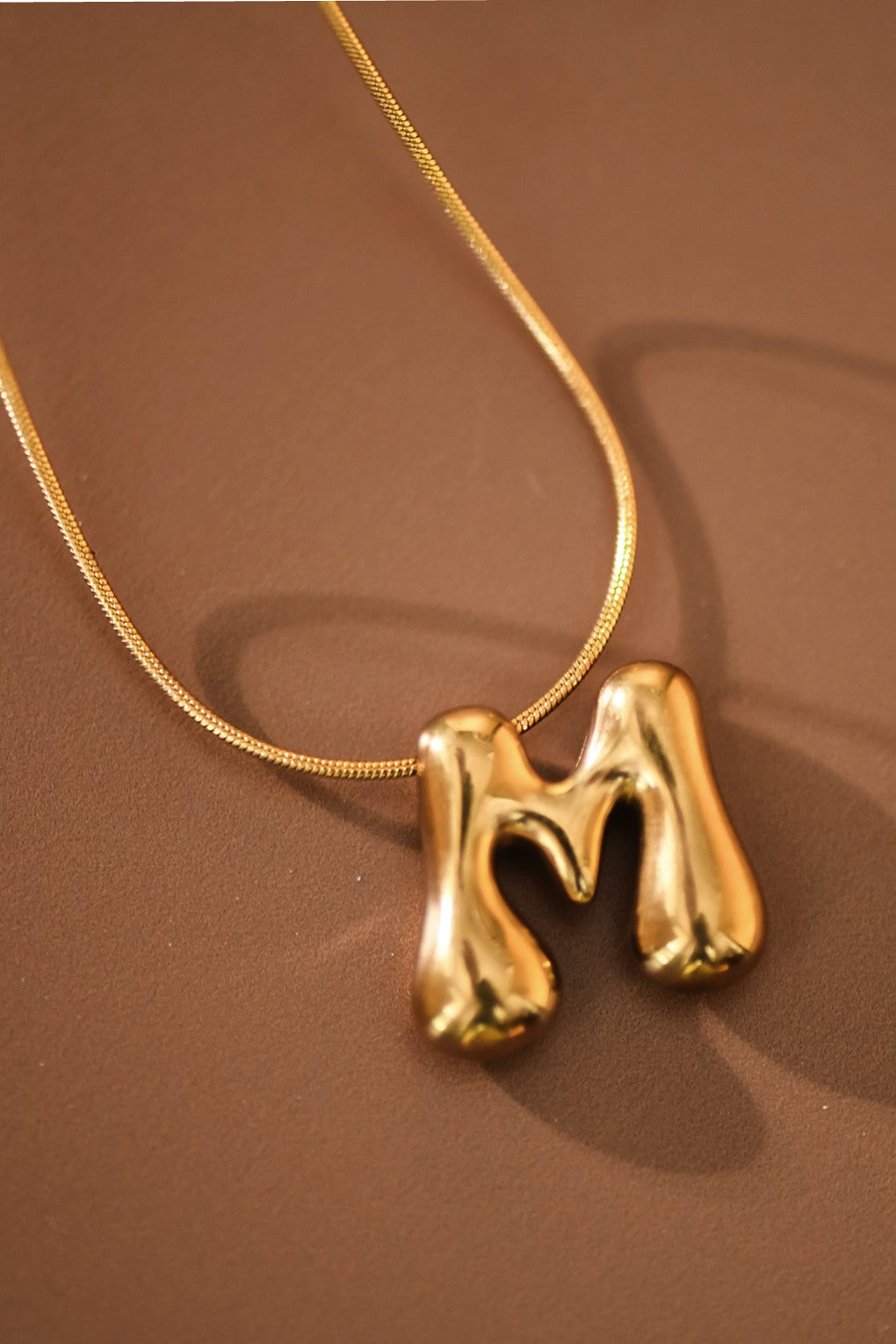 18K Gold Dipped Non-Tarnish Stainless Steel Initial Necklace. Approx. 15.75" long + 2" extender. The necklace is hypoallergenic, waterproof, fade-resistant, and tarnish-free, ensuring its beauty lasts for a long time. Looks great worn on its own or layered with our other stainless steel necklaces. Bubble Initial Necklace | Balloon Letter Necklace | Letter Charm Necklace | Initial Pendant Necklace | Name Necklace | Monogram Necklace | Real Gold Dipped Necklace | Real Gold Plated Necklace | Waterproof & Sweatproof Jewelry | Simple Gold Necklace | Bubble Letter Monogram Necklace