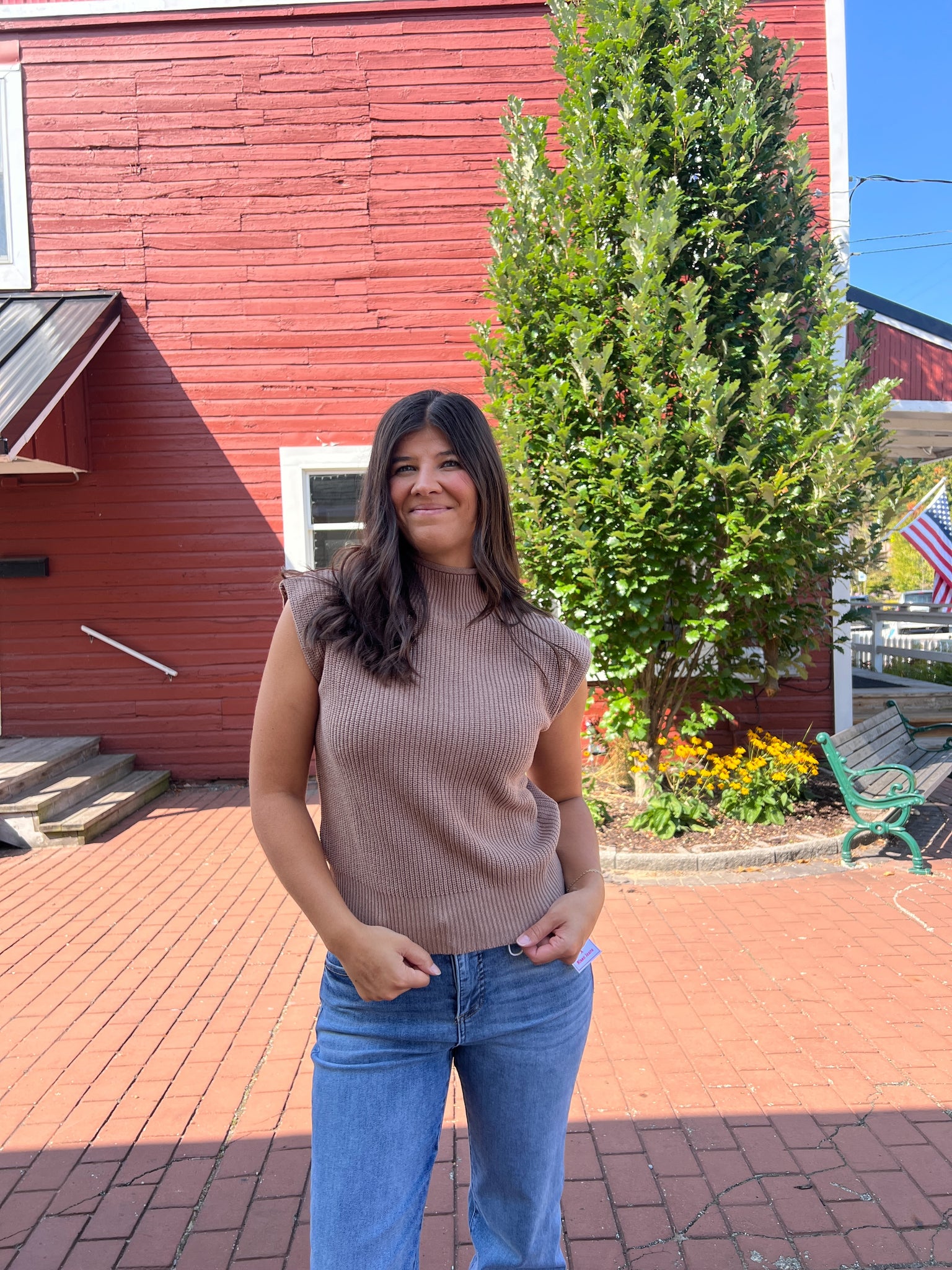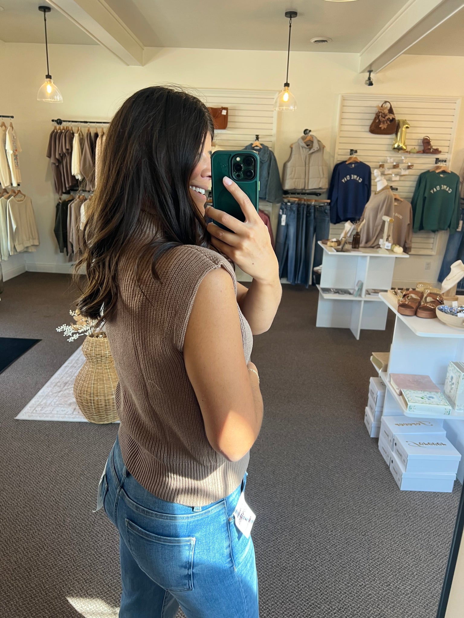 Mock neck sleeveless solid ribbed knit sweater