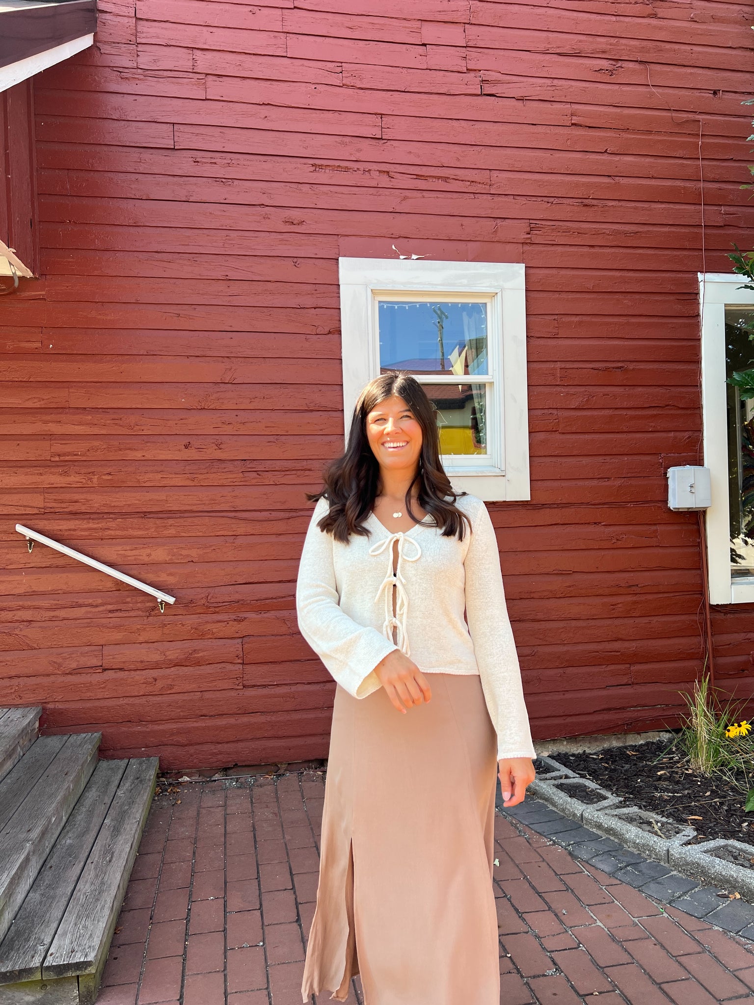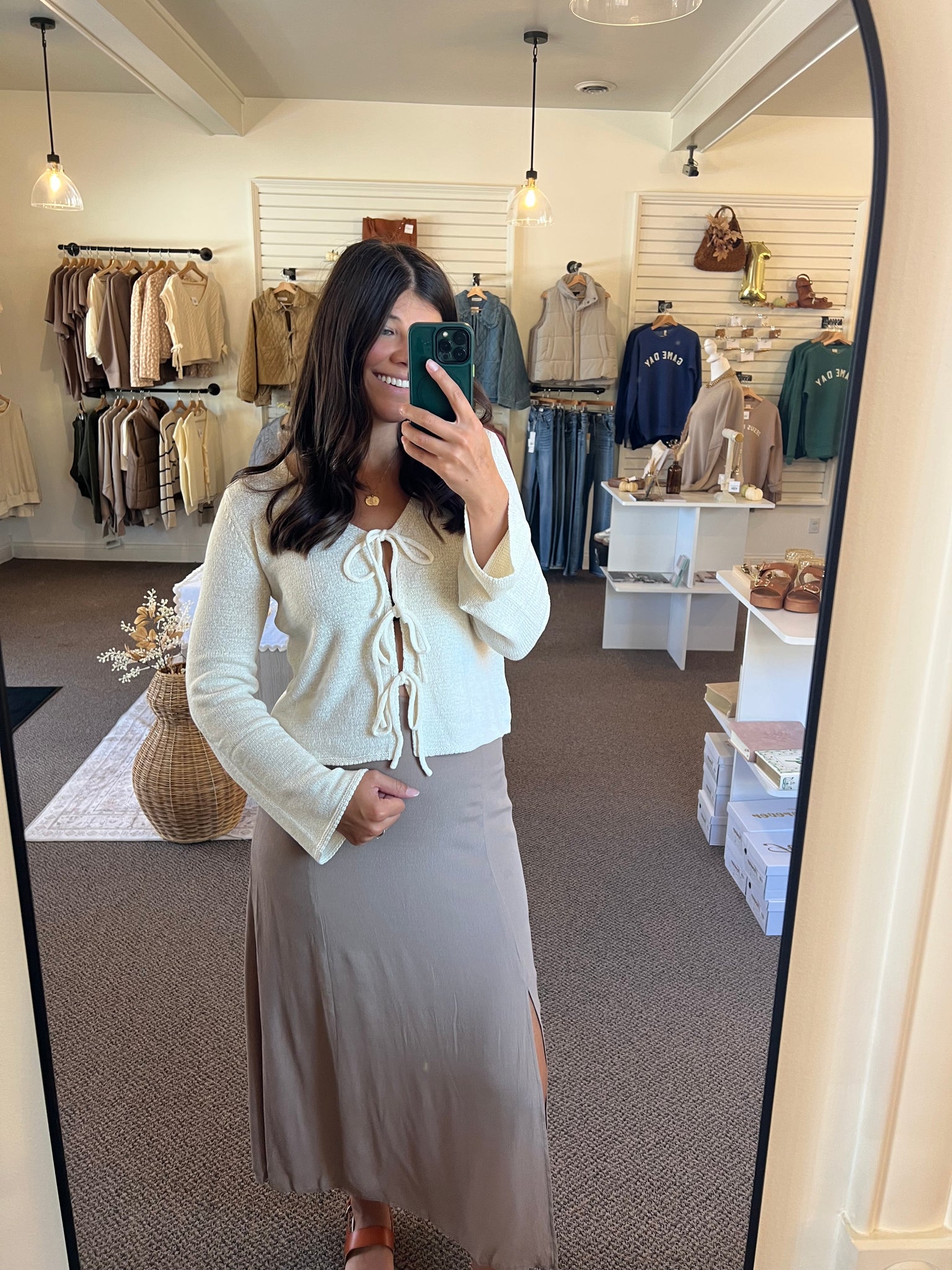 • Load image into Gallery viewer, Ellie Front Tie Cardigan - Cream