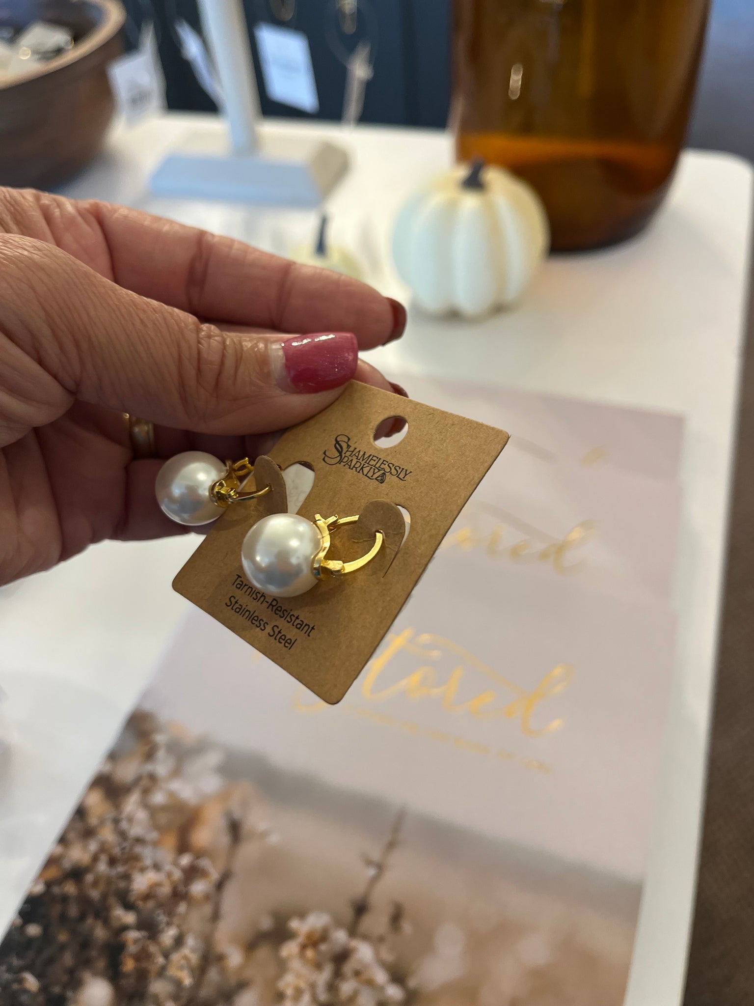 18K Gold Plated Non-Tarnish Stainless Steel Earrings. Approx. 1" L These are hypoallergenic, waterproof, fade-resistant, and tarnish-free, ensuring their beauty lasts for years. Perfect for everyday wear or special occasions. Pearl Earrings | Simple Gold Earrings | Waterproof & Sweatproof Jewelry | Simple Lightweight Earrings | Minimalist Earrings | Real Gold Dipped Earrings | Real Gold Plated Earrings | Stainless Steel Metal Earrings