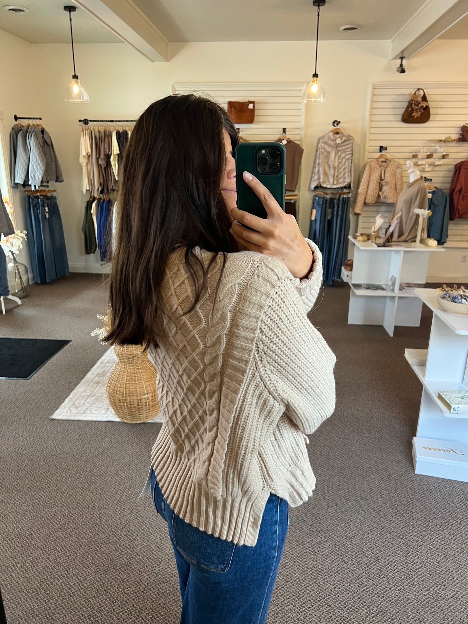 DIAMOND PATTERN CABLE KNIT SWEATER TOP