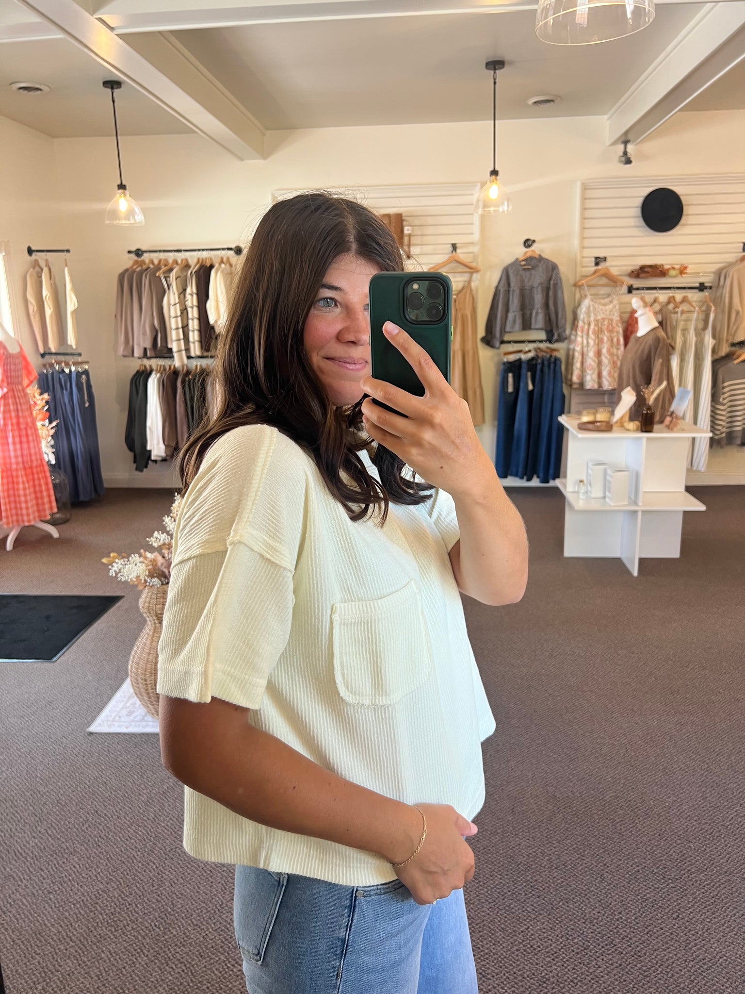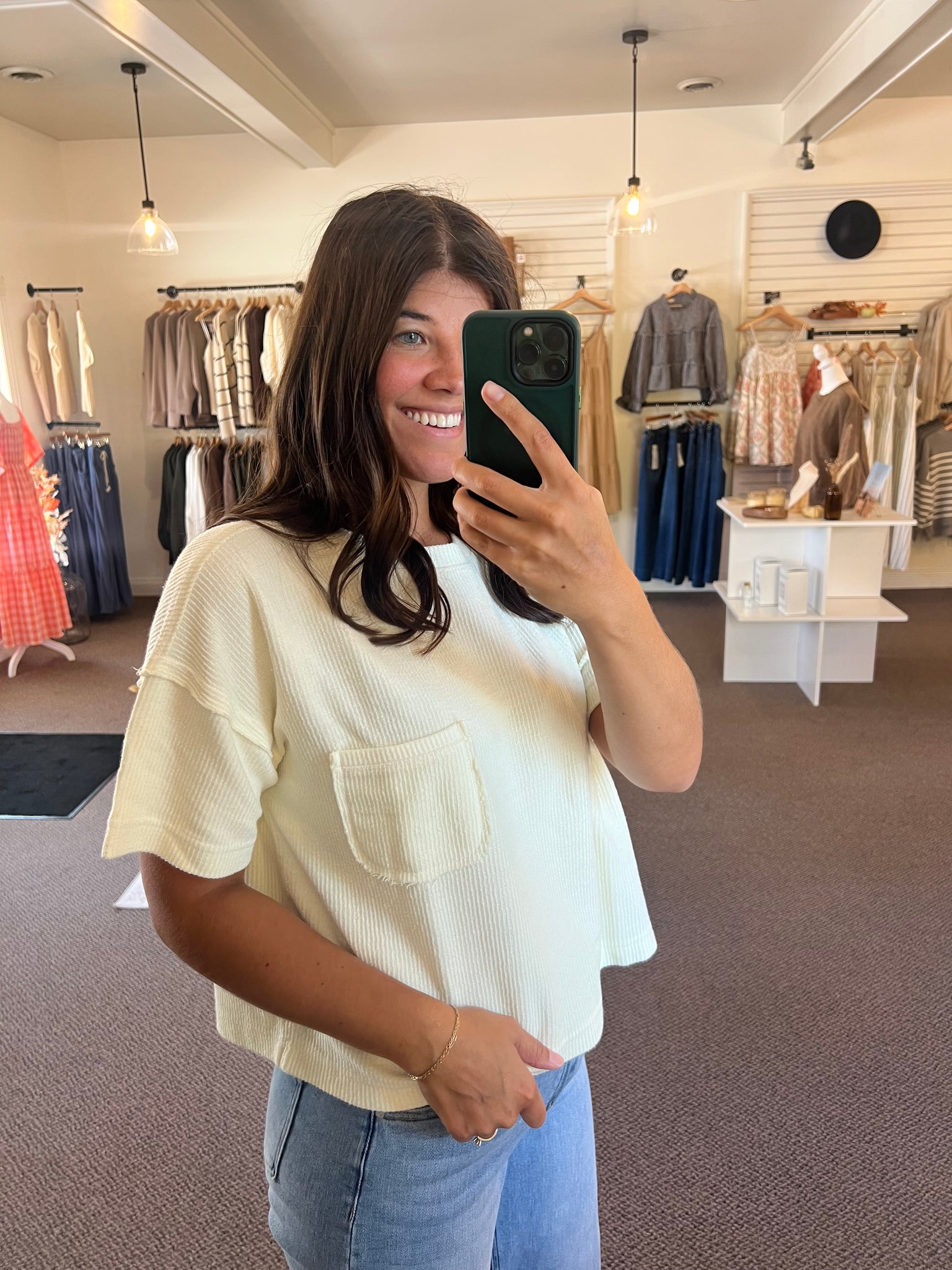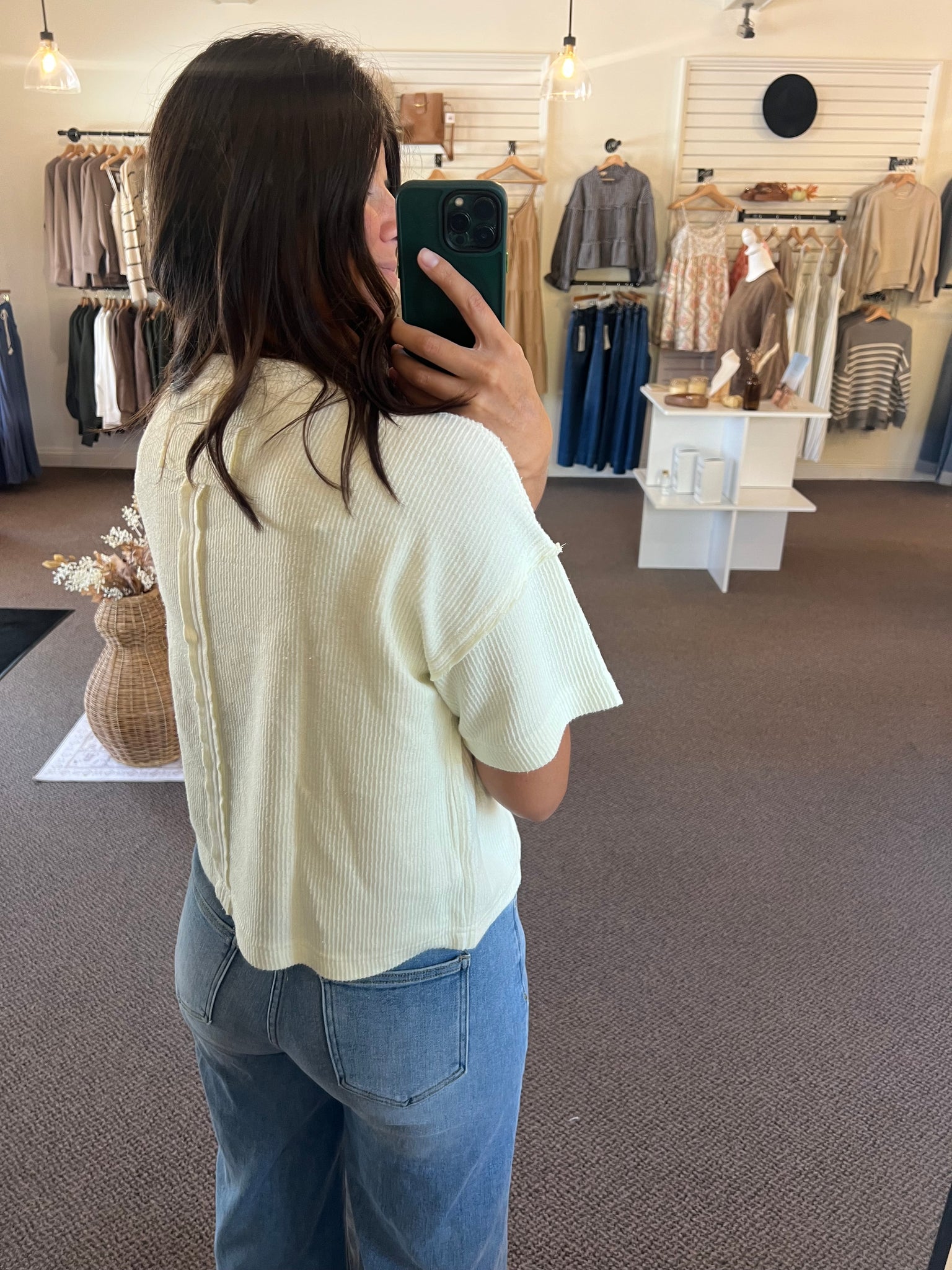 • Load image into Gallery viewer, Washed Ribbed Tee - Cream
