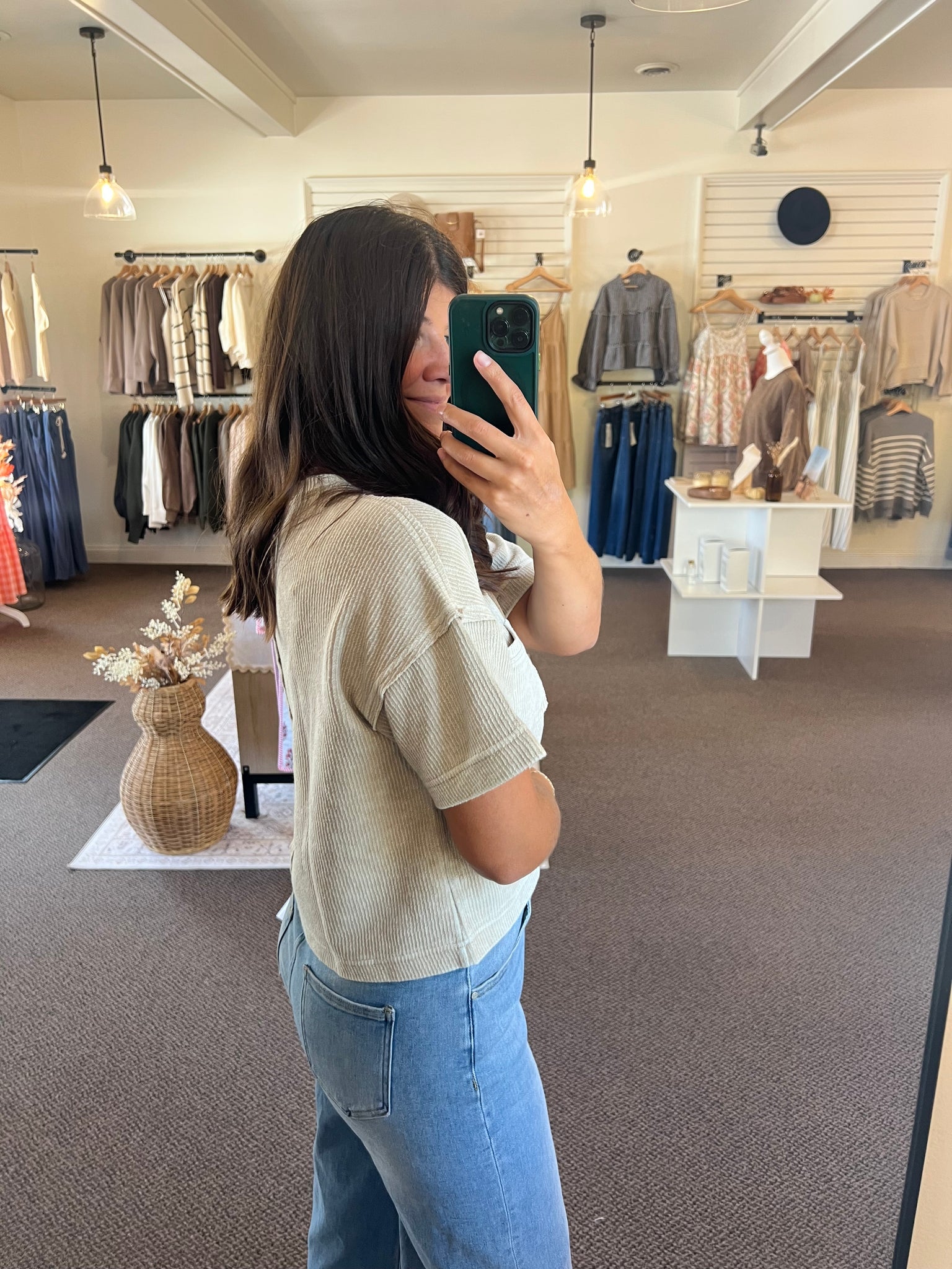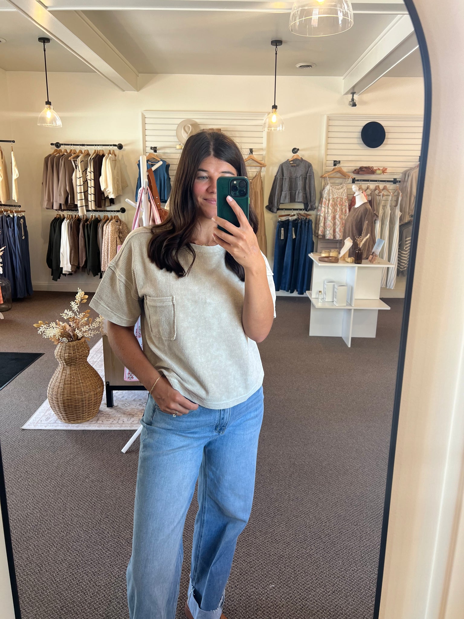 ROUND NECKLINE SHORT SLEEVES DROP SHOULDER RAW EDGE EXPOSED SEAM RELAXED FIT WASHED RIBBED PATTERN LINED 60%COTTON 40%POLYESTER